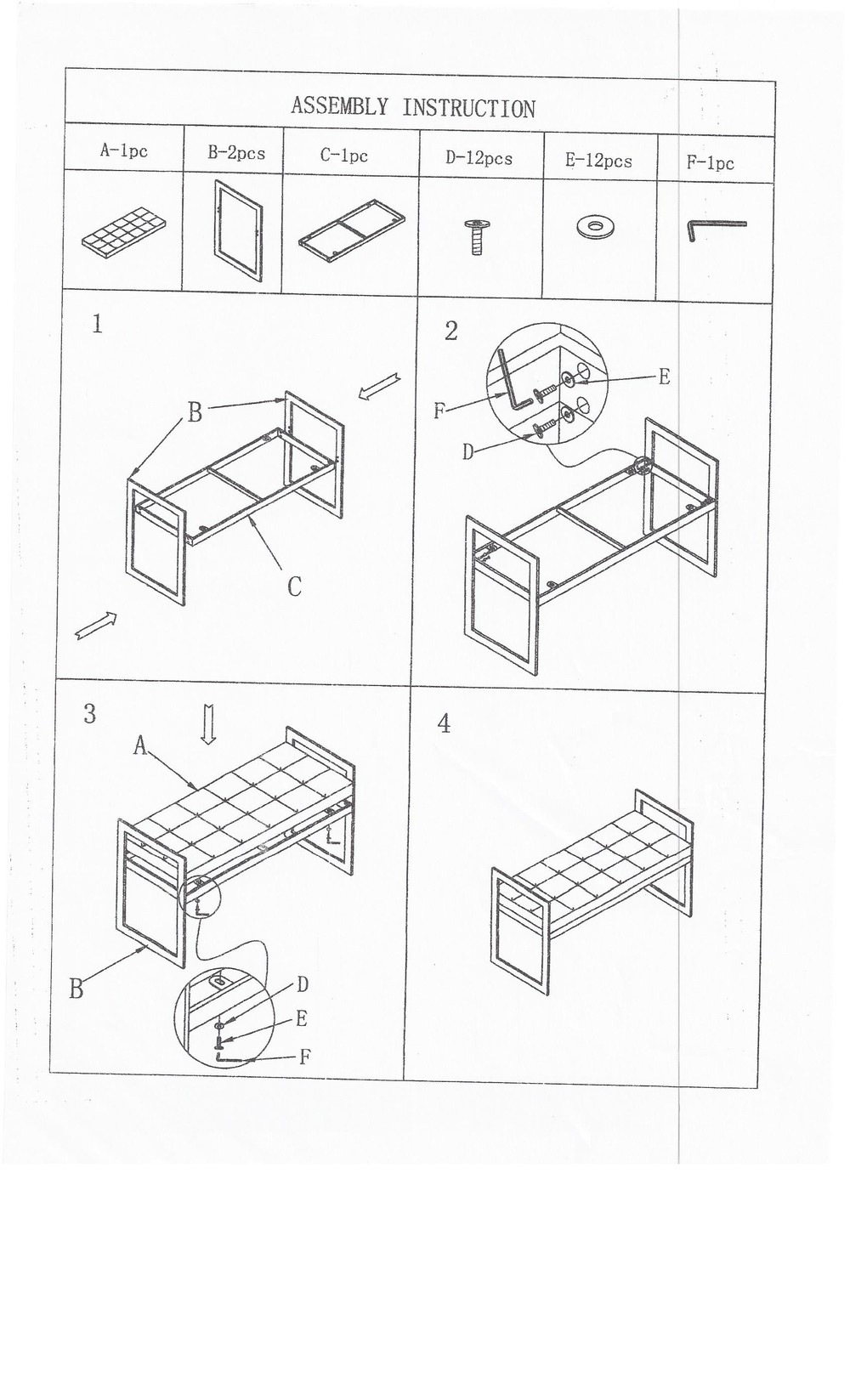 2)체결한 직사각형 프레임과 좌판쿠션을 볼트와 너트로 체결하여 완성합니다.